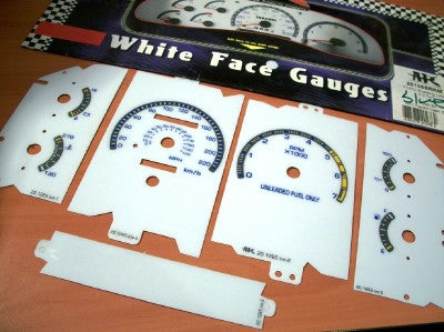 You are looking at a VERY-RARE-TO-FIND kit of white face gauges new in the box with the top quality available guaranteed; listing price of $99.99These are not glow gauges, which eliminates any involvement of wiring.