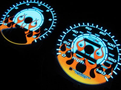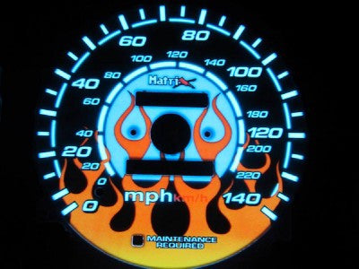 THIS AD IS FOR A NEW SET OF FLAMED GLOW GAUGES FROM MATRIX. THEY ARE REALLY UNIQUE IN DESIGN AND UNIQUE IN FUNCTIONALITY. PLEASE MAKE SURE TO COMPARE YOUR CLUSTER LAYOUT WITH THE PICTURES.