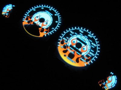 WITH THESE GLOW GAUGES YOU WILL BE ABLE TO CONTROL THE BRIGHTNESS OF THE FLAME AS WELL AS CHANGE THE BACKGROUND FROM GREEN TO BLUE. GREAT WAY TO MAKE YOUR CAR UNIQUE AND SHOW IT OFF.