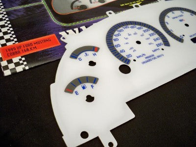 99-03 Metric in Km Ford Mustang Cobra White Face Glow Through Gauges 201057BKM