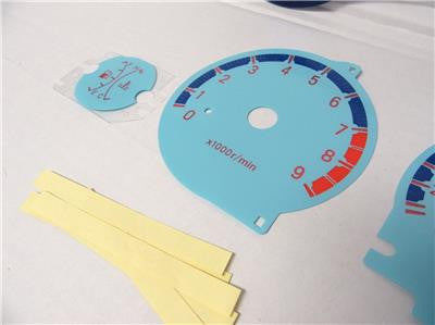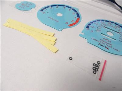This ad is for a combo of Glow Through Light Blue Gauges and Anodized Blue Aluminum Trim. This combo of gauges and trim will fit 95-99 MITSUBISHI ECLIPSE Turbo 160MPH with manual transmission ONLY!!!