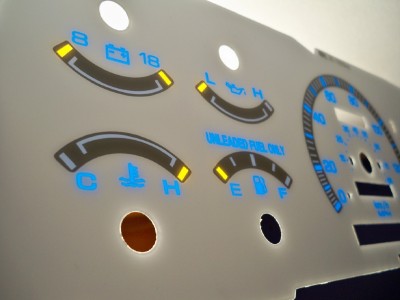 You are looking at a VERY-RARE-TO-FIND kit of white face gauges new in the box with the top quality available guaranteed; listing price of $99.99. These are not glow gauges, which eliminates any involvement of wiring. Installation instructions are included. Please don't get fooled with others who sell white face gauges that are like bumper sticker. Most of them don't glow through, and you won't see any of your hazard lights such as oil pressure, seat belt, and battery charge.
