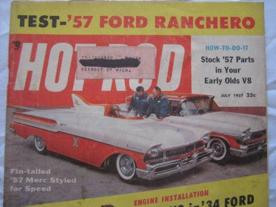 Hot Rod Magazine July 1957 '57 Ranchero '34 Ford '52 Chevy