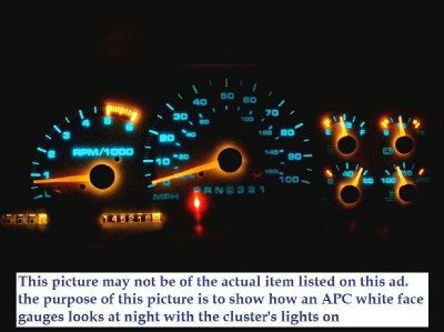 You are looking at a VERY-RARE-TO-FIND kit of white face gauges new in the box with the top quality available guaranteed; listing price of $99.99. These are not glow gauges, which eliminates any involvement of wiring. Installation instructions are included. Please don't get fooled with others who sell white face gauges that are like bumper sticker. Most of them don't glow through, and you won't see any of your hazard lights such as oil pressure, seat belt, and battery charge.