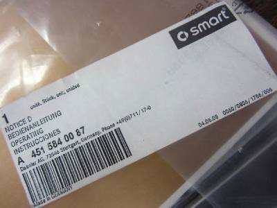 NEW 2008-2013 Operator's Manual For Smart Fortwo Coupe & Cabrio 451 584 00 87
