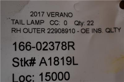 This AD Is For A OEM 2012-2017 Buick Verano Right Side Tail Light.